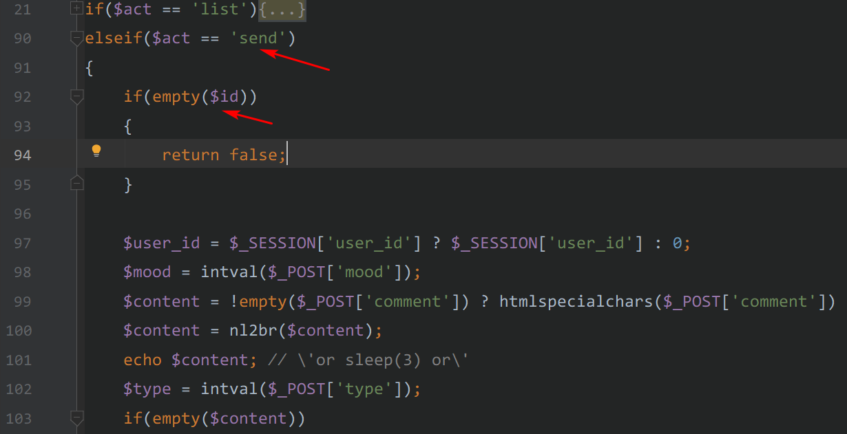 $act == 'send'empty($id),这两个变量的值可以通过$_REQUEST变量传递,empty($content)POST获得。