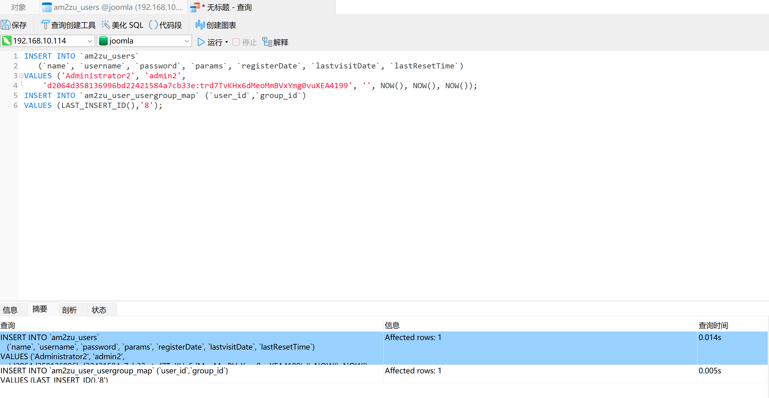 在am2zu_users 表中可以发现,存储密码的password字段是经过加密的