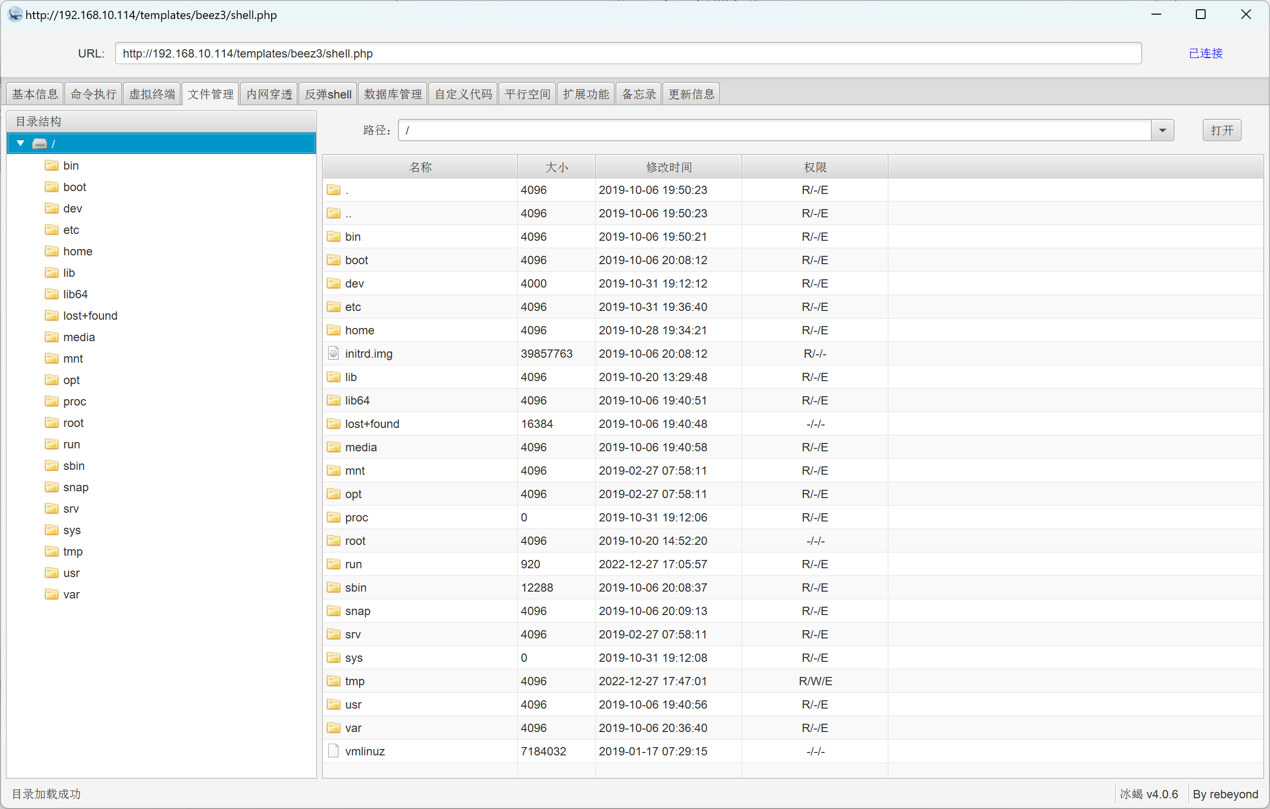 最开始,我想尝试通过该靶机执行一个 反弹shell的时候来控制靶机的时候,发现怎么都反弹不过来,后来才这个靶机的IP是内网IP,该主机的web服务器是通过 192.168.10.114这台机器上的nginx服务器进行转发的,我们也只能通过 nginx 服务器 来跟内网的web服务器进行通信,那么也可以通过该 webshell 做个简单的信息收集。