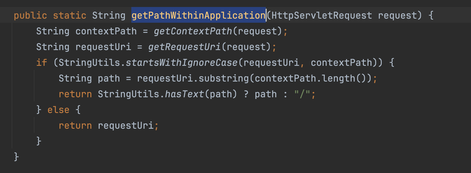 跟入后,在org.apache.shiro.web.util.WebUtils#getPathWithinApplication方法中,首先会调用getContextPath方法拿到contextPath