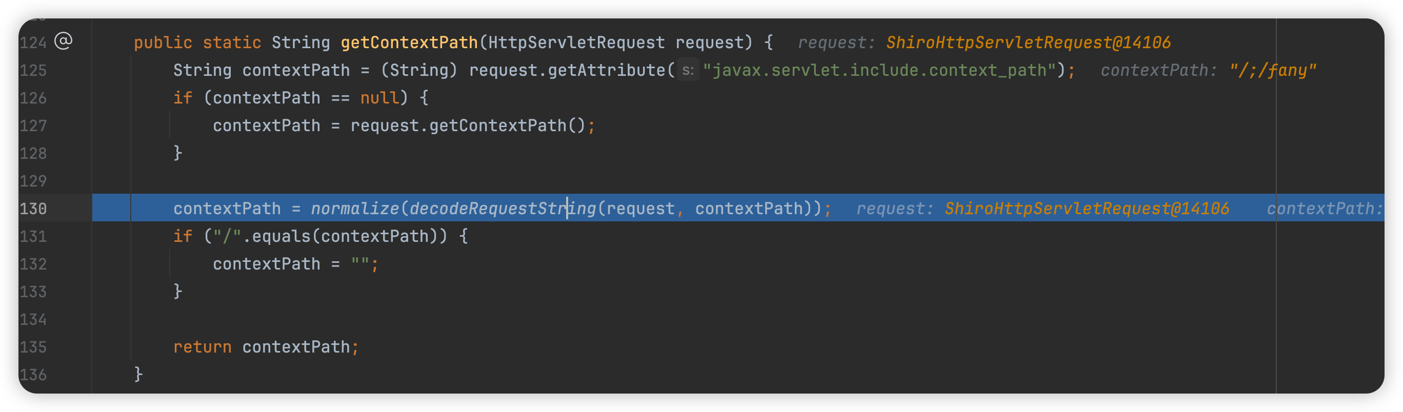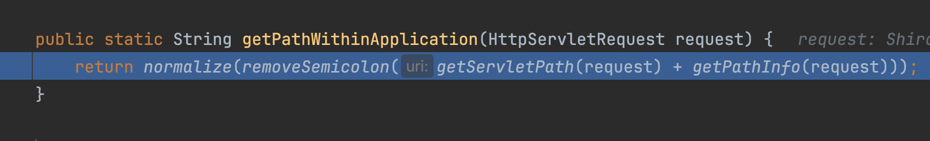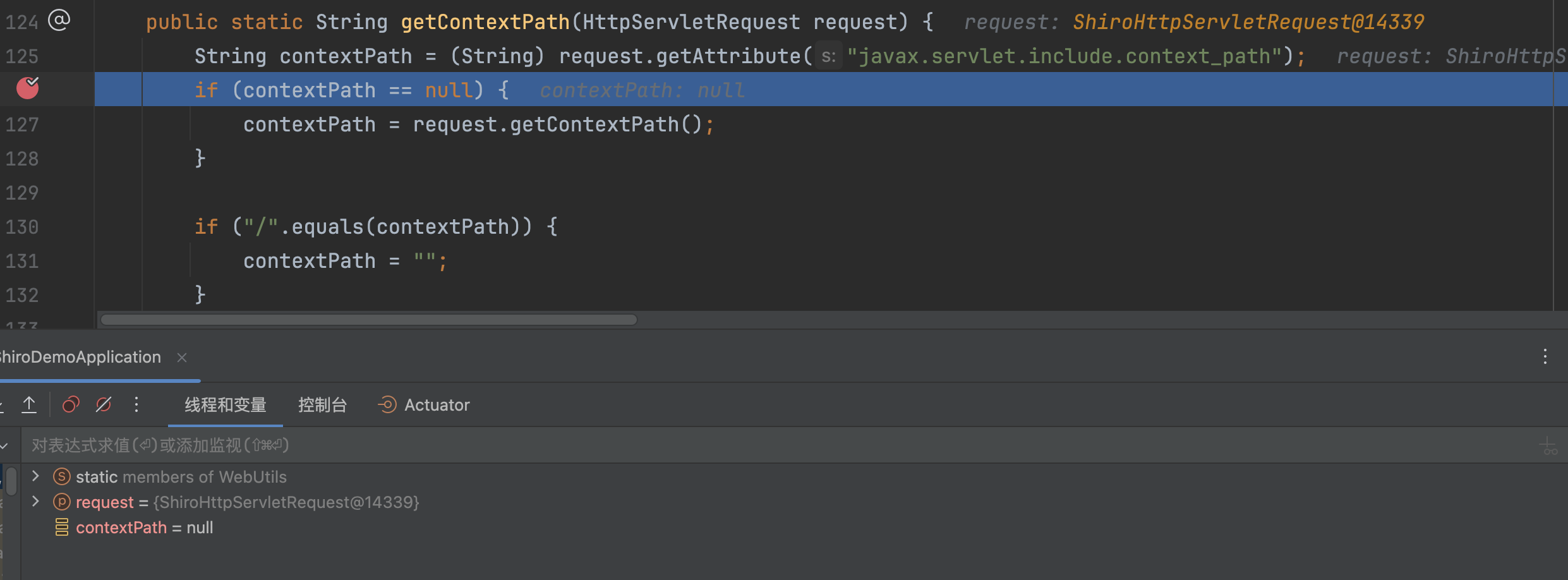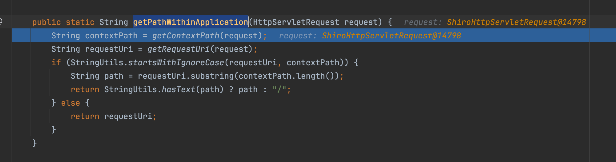 跟入后,在org.apache.shiro.web.util.WebUtils#getPathWithinApplication方法中,首先会调用getContextPath方法拿到contextPath