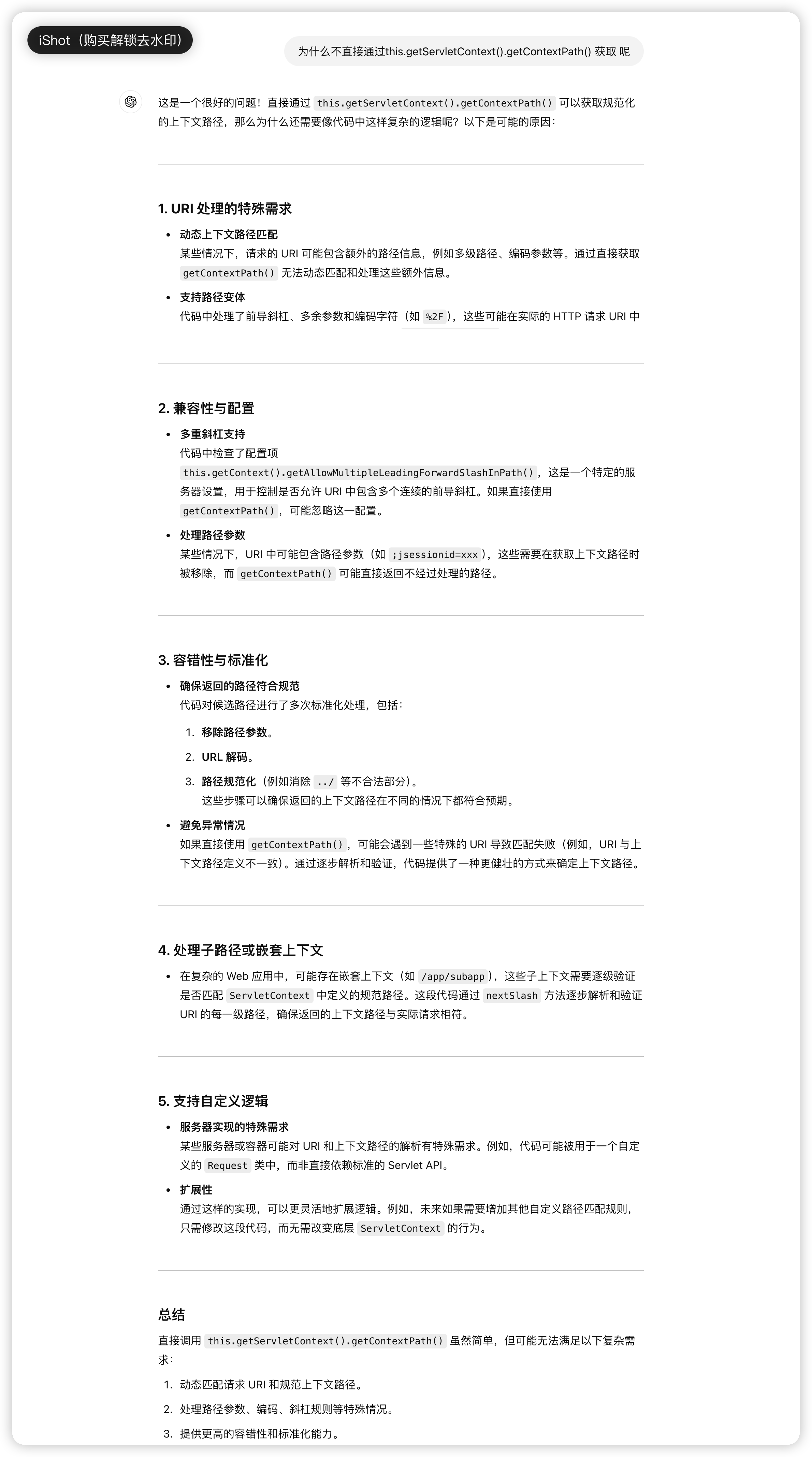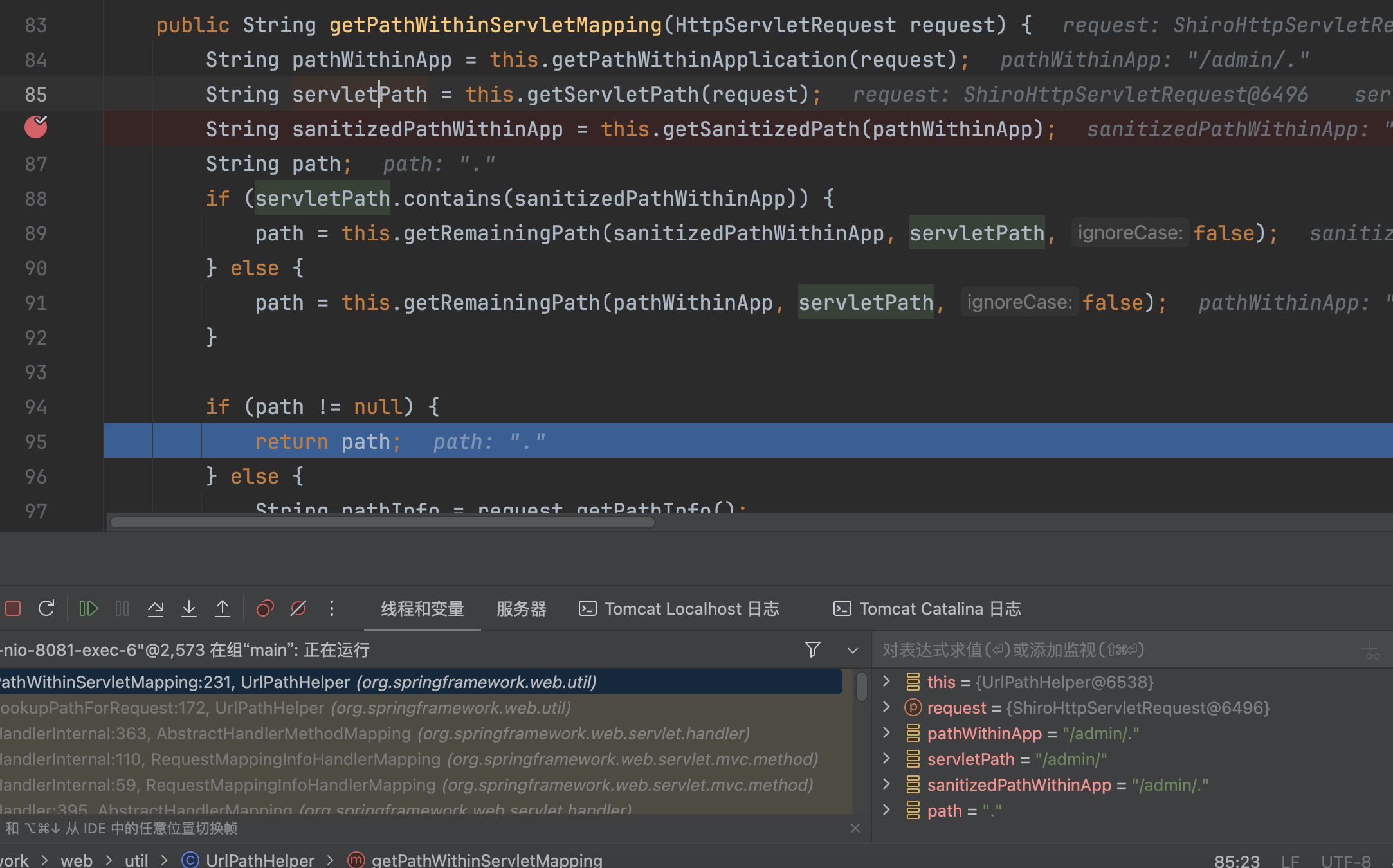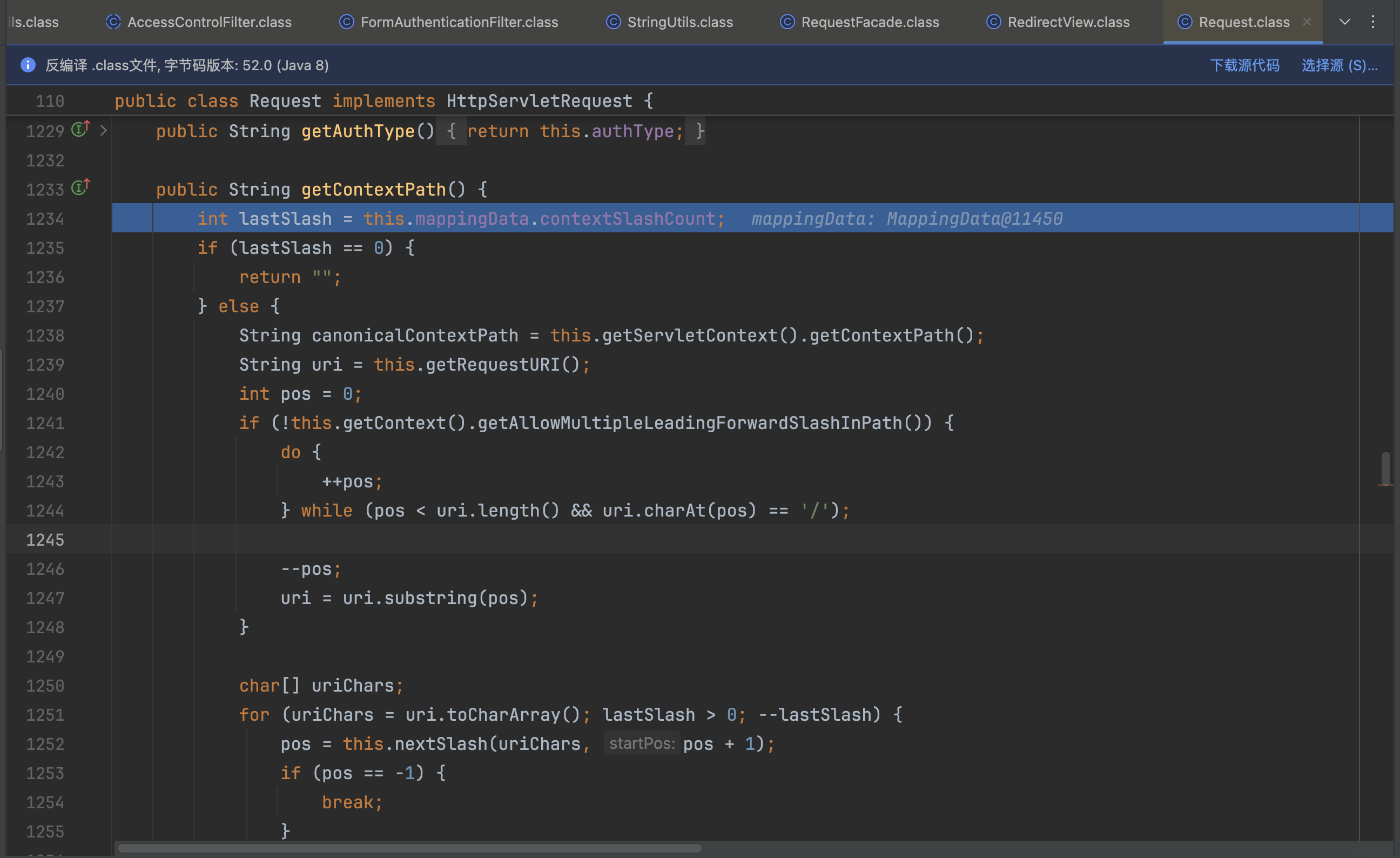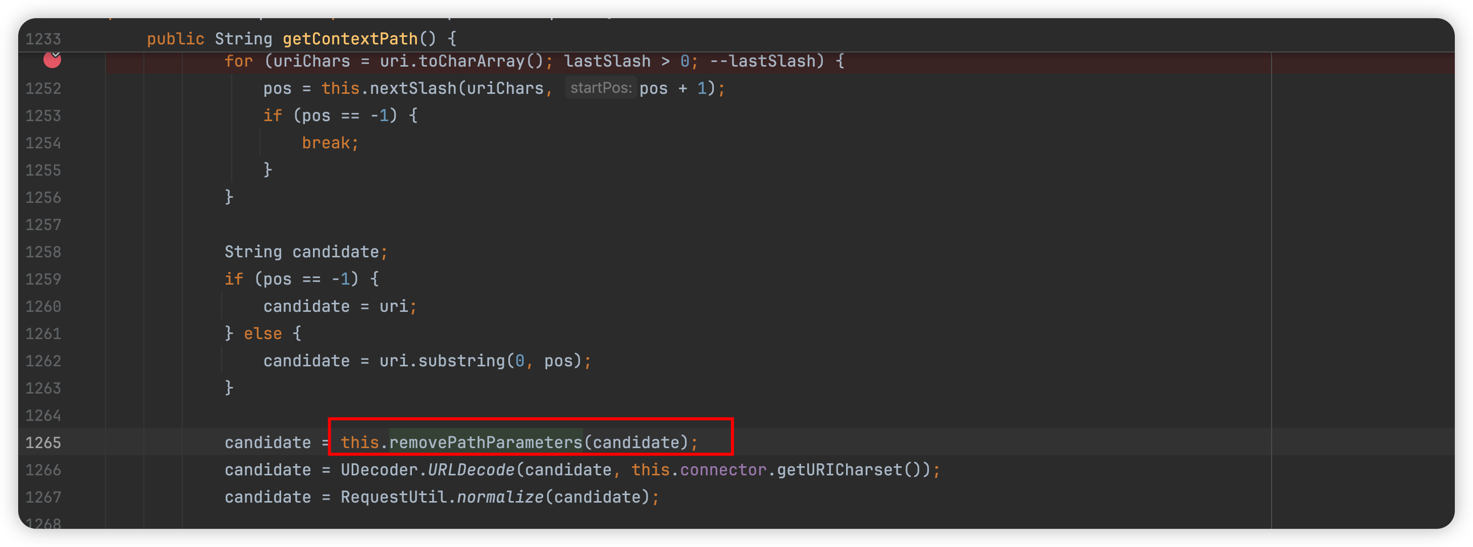 跟入后,在org.apache.shiro.web.util.WebUtils#getPathWithinApplication方法中,首先会调用getContextPath方法拿到contextPath
