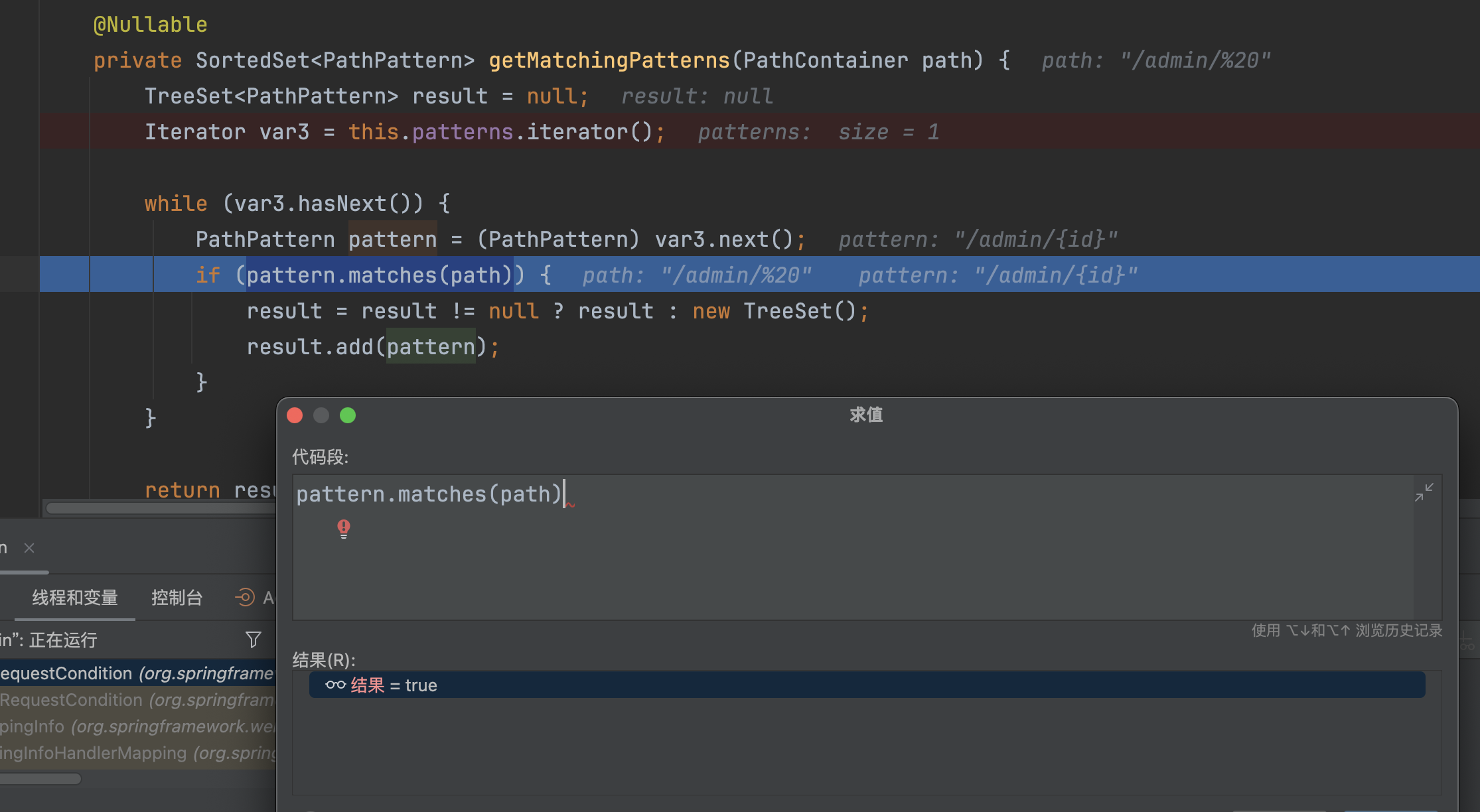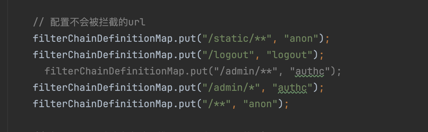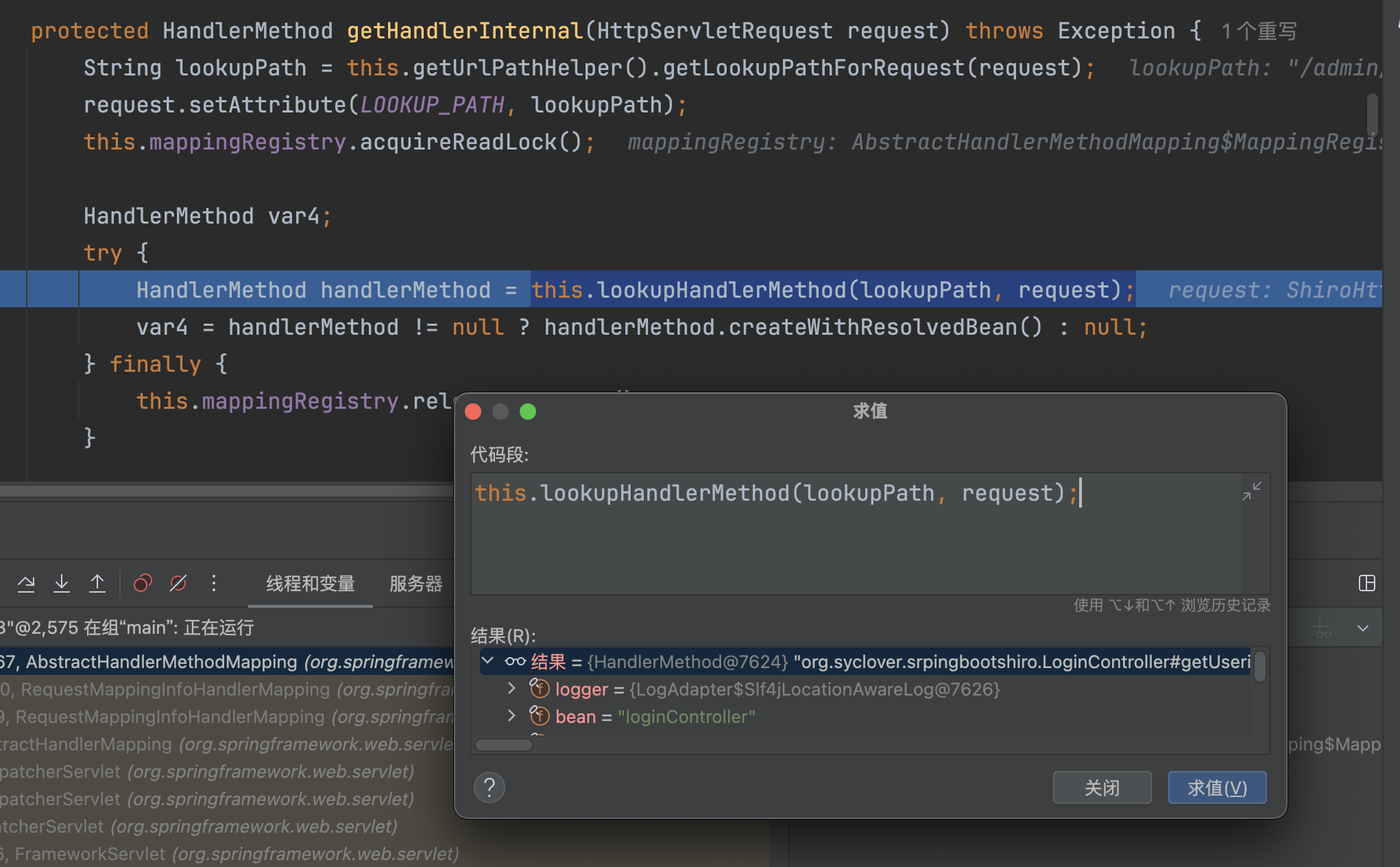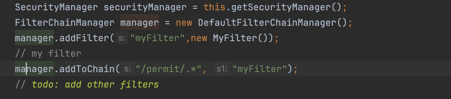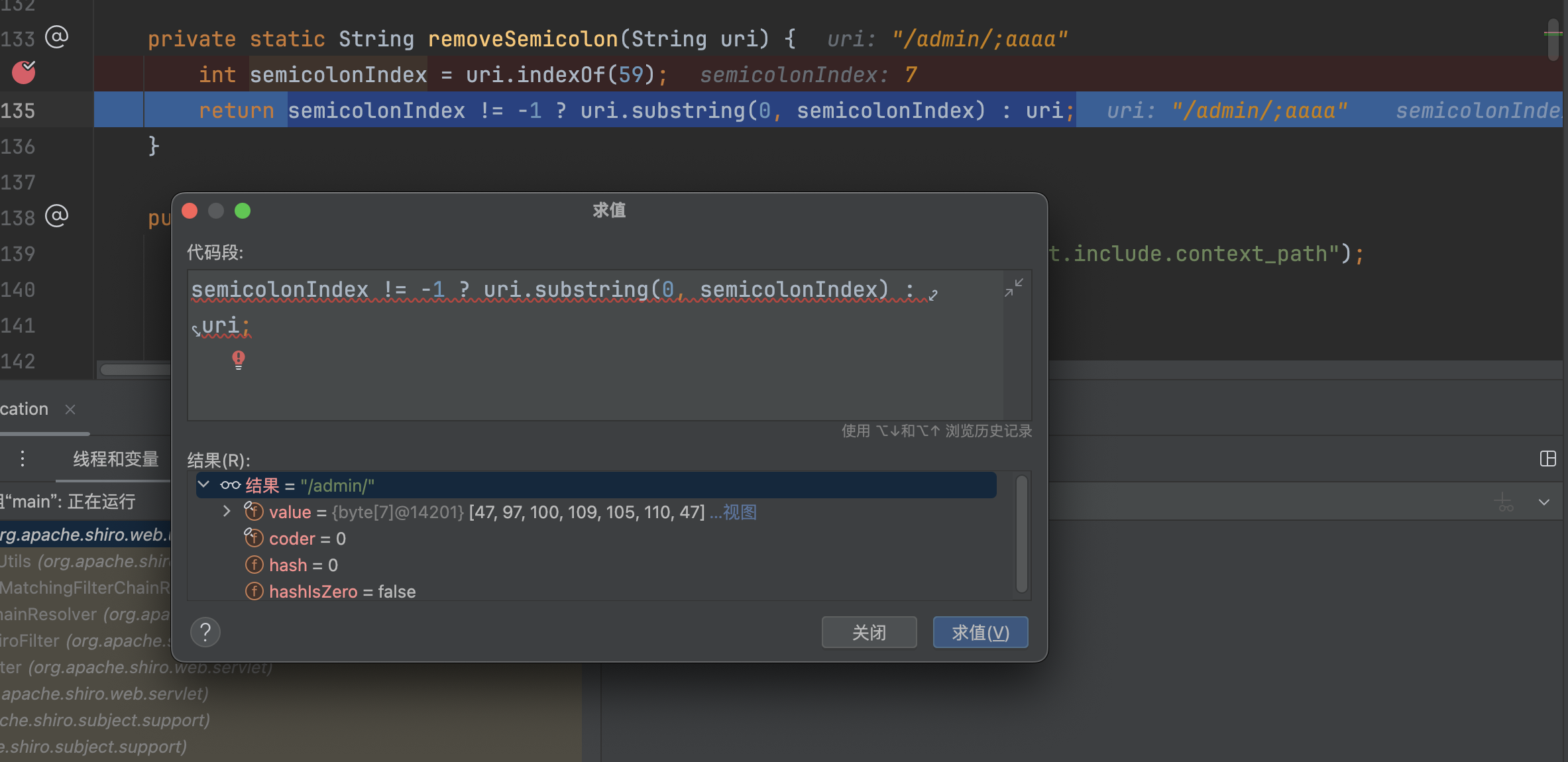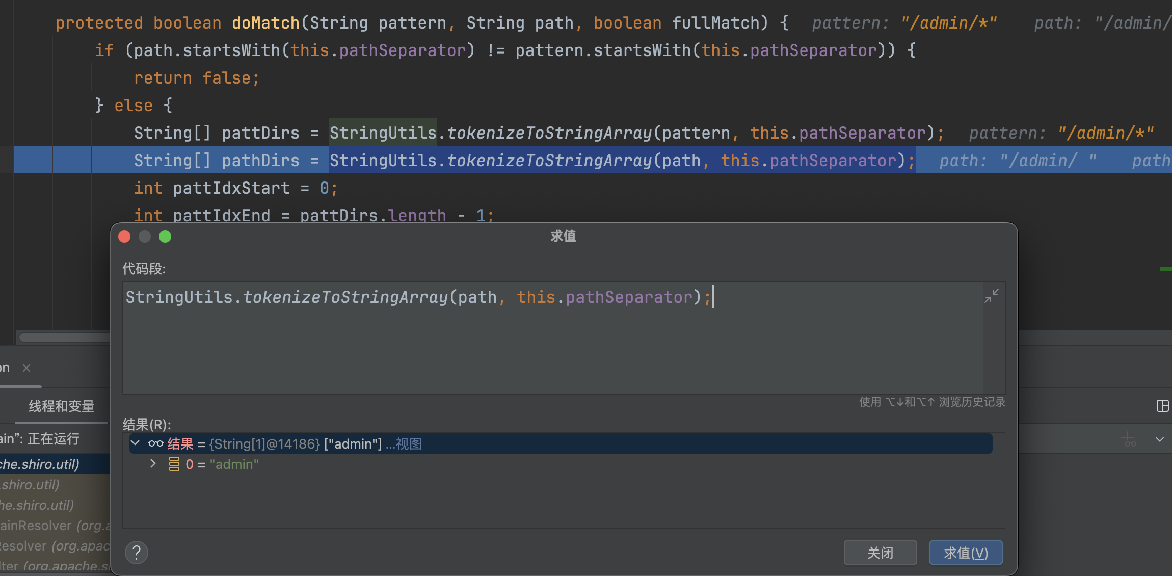 断点打在org.apache.shiro.web.filter.mgt.PathMatchingFilterChainResolver#getChain方法中,首先是获取过滤器链管理对象FilterChainManager,然后调用this.getPathWithinApplication(request)获取请求的URI